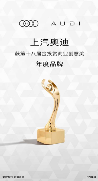 10月17日,第十八届金投赏国际创意节在上海落幕,2025年度获奖榜单重磅揭晓。上汽奥迪凭借在品牌建设与营销创意方面的卓越表现,成功摘得本届大奖中汽车行业唯一的「年度品牌」奖。
