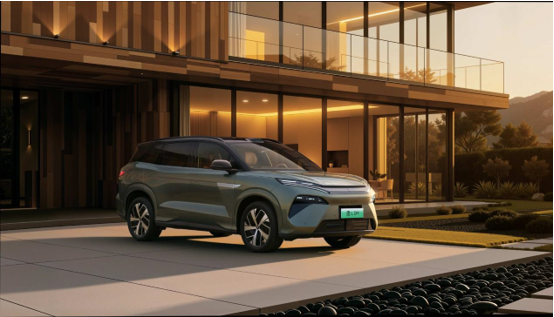 其中,橄榄绿采用低饱和度、高反射金属漆面,通过纳米级高透色浆与微米级超细铝粉的精密配比,呈现出绿中透金的渐变效果。在阳光下呈现清新明亮的视觉效果,而在室内则转为深邃墨绿,完美契合当代精英“于静谧中蕴藏活力”的生活态度。同时,唐L为配合橄榄绿车色,加入了悬浮黑顶,强化视觉张力,黑色车顶与车身撞色鲜明,营造“悬浮式”视觉效果,增强车身层次感,营造出极具质感的运动风格。