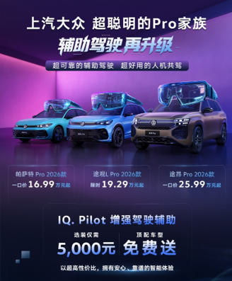 近年来,上汽大众始终秉承“油电同进,油电同智”战略,坚持燃油、新能源协同发展,覆盖用户的全场景需求。Pro家族2026款的上市与升级,为燃油车用户提供了遵循严苛安全品质、又深度适应中国市场的辅助驾驶与智舱解决方案,实现了“油电平权”的体验跨越。未来,上汽大众将持续推动燃油与新能源双轨并进,以更丰富的产品矩阵、更智慧的科技体验,陪伴每一位用户轻松出发、安心共驾,成就人车和谐共处的崭新未来。