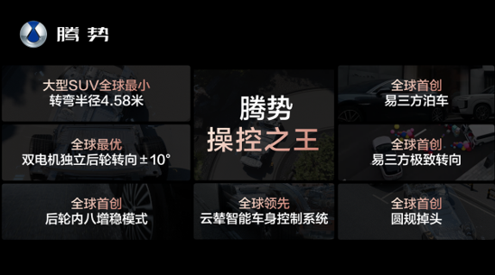 一系列硬核科技的加持,让腾势N8L成为了家用SUV中的操控之王。它全系标配“易三方”整车智能控制技术平台,全球首创圆规掉头、极致转向、后轮内八增稳、易三方泊车等功能,后轮双电机独立驱动带来了最大±10°的后轮转向角度,全球最优,转弯半径最小仅有4.58m,是大型SUV中的全球之最。