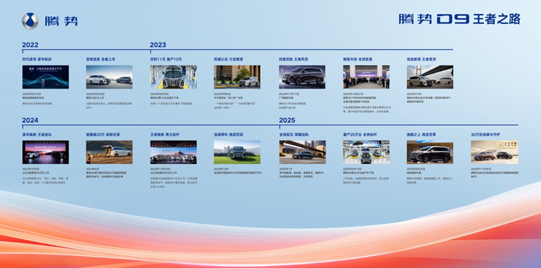 腾势D9的成功,是中国品牌创新发展之路的一个缩影。作为全球首款达成第30万辆交付的新能源MPV,腾势D9如今在更高的起点上持续突破。在不远的将来,MPV冠军腾势D9将持续获得精英圈层的认同,与每一位用户一起向着美好生活,腾势而上!